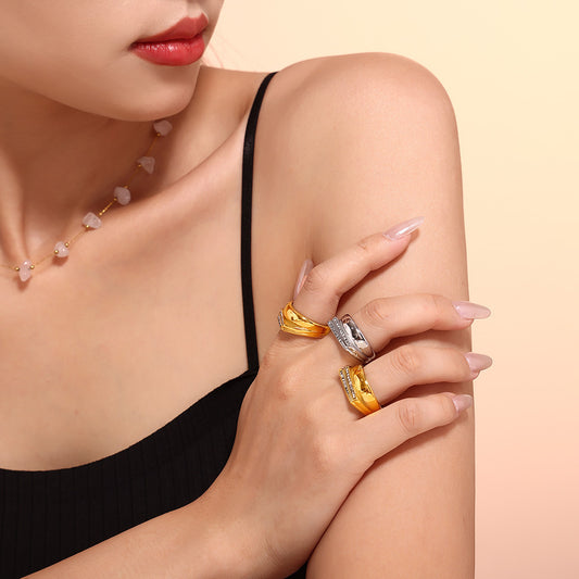 B廠【A919】歐美跨國鑲排鑽戒指不規則設計感不鏽鋼小眾ins風潮流食指戒手飾 24.09-2