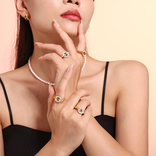 B廠【A921】歐美跨境輕奢感鑲鑽滿天星不銹鋼食指戒時尚小眾指環ring 24.09-2