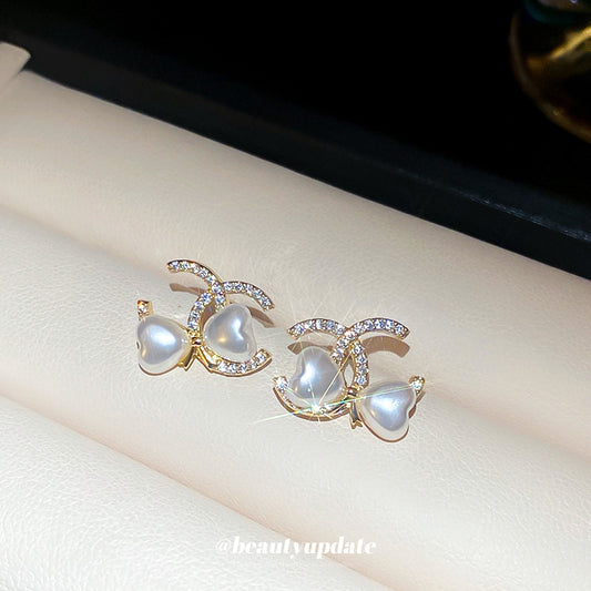 A廠【HE24086】925銀針鑲鑽月亮人造珍珠耳環女小眾百搭耳環時尚氣質耳環輕奢高級感 24.12-2