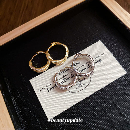 A廠【WE1470】真金電鍍銀針簡約鋯石C型耳環小眾百搭氣質耳環輕奢高級感耳飾女 25.01-1