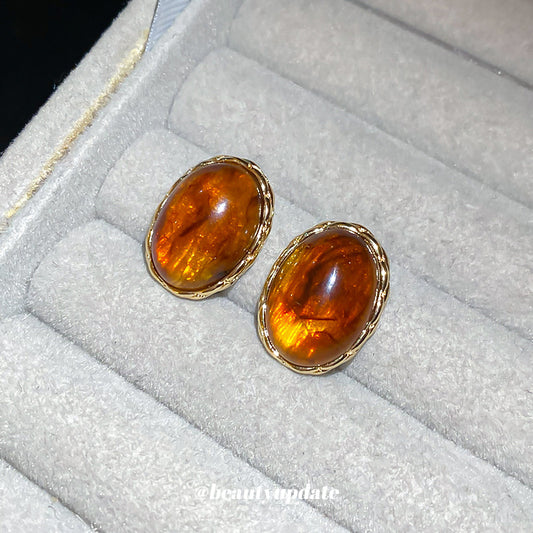 A廠【HE24528】銀針美拉德橢圓形耳環復古時尚氣質耳環小眾百搭個性耳環輕奢高級感 25.01-1