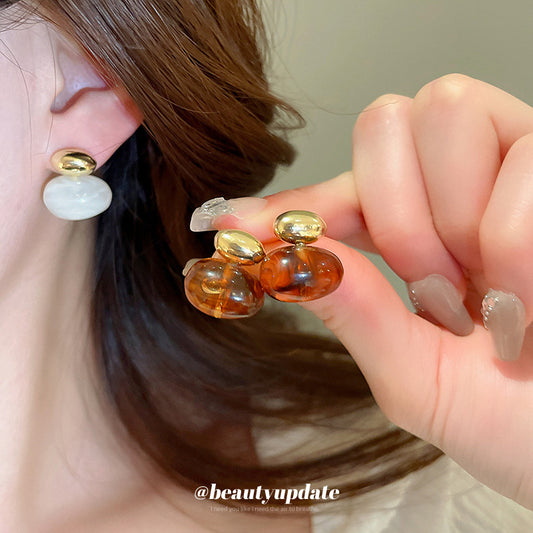 A廠【HE24473】銀針不規則樹脂耳環美拉德小眾百搭耳環女時尚氣質耳飾輕奢高級感 25.01-1