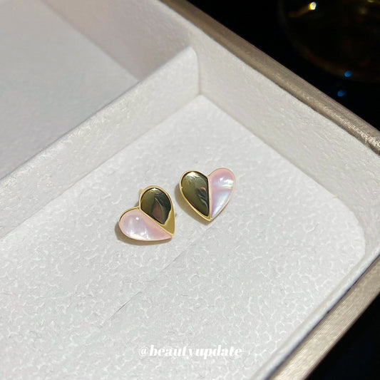 A廠【HE24491】真金電鍍銀針愛心貝母耳環韓系簡約耳環女時尚百搭耳飾輕奢高級感 25.01-1