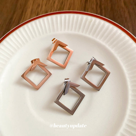 A廠【HE24504】鈦鋼簡約菱形耳環小眾百搭設計耳環冷淡風時尚氣質耳飾輕奢高級感 25.01-1