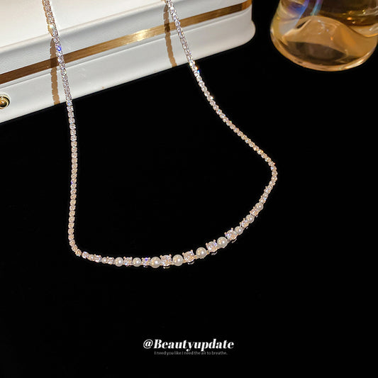 A廠【HN8130】冷淡風鋯石珍珠項鍊女小眾簡約百搭鎖骨鏈時尚氣質輕奢高級感飾品 25.01-1