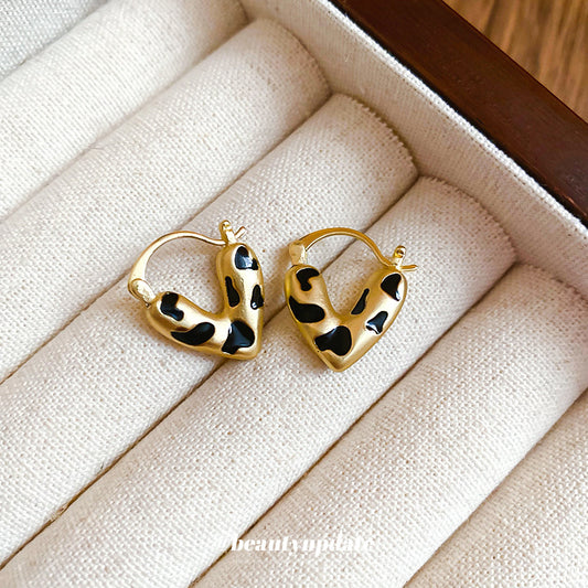 A廠【HE24511】復古滴油愛心豹紋耳環時尚簡約百搭耳環女小眾個性耳環輕奢高級感 25.01-1