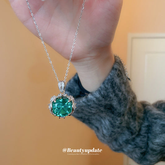 A廠【HN8120】復古鋯石方形吊墜項鍊時尚氣質高級感鎖骨鏈小眾百搭設計飾品配件