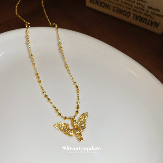 A廠【HN8090】鑲鑽天使吊墜項鍊女小眾輕奢高級感鎖骨鏈中古風百搭氣質飾品配件 25.01-1