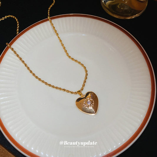 A廠【HN8123】真金電鍍鋯石花朵愛心吊墜項鍊輕奢高級感百搭鎖骨鏈時尚飾品配件 25.01-1