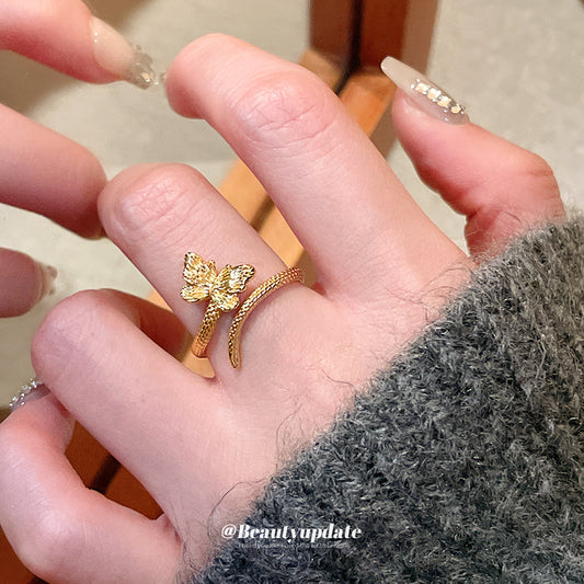 A廠【HR2385】金屬蝴蝶蛇形纏繞開口戒指女小眾復古時尚食指戒百搭氣質輕奢手飾 25.01-1