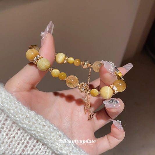 A廠【WB311】復古鋯石星星金虎眼石手鍊女輕奢高級感手串手環小眾時尚百搭手飾 25.01-1