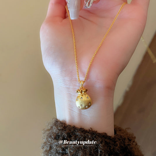 A廠【HN8117】真金電鍍鋯石福袋吊墜項鍊新中式簡約百搭鎖骨鏈小眾時尚氣質飾品 25.01-1