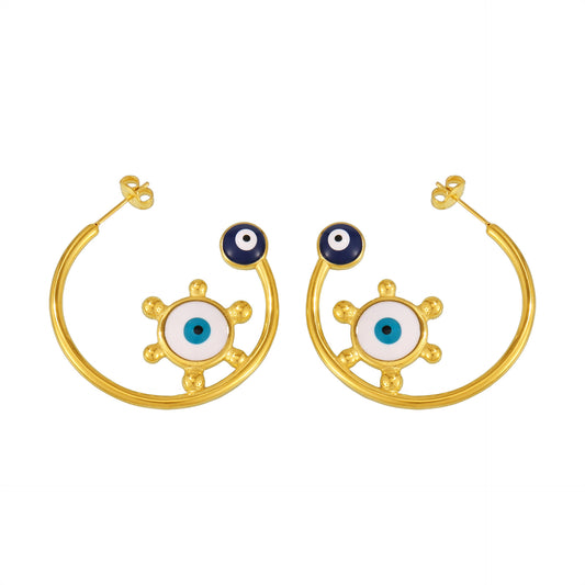B廠【F526】不鏽鋼鍍18K真金琺瑯彩釉光芒眼睛C型圓環走秀時髦誇張耳環 25.01-1