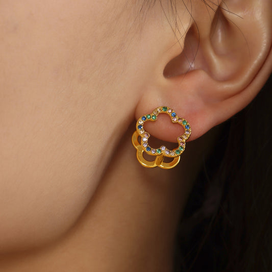 B廠【F454】耳飾秋冬高版花朵雙面配戴卡扣鋯石耳環飾品鍍18K真金保色 25.01-1