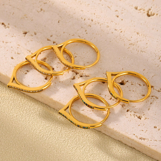 B廠【A586】英國小眾品牌S線條鋯石開口戒指不鏽鋼18K真金時尚跨國飾品 25.01-1