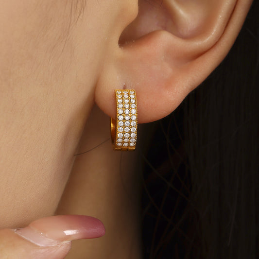 B廠【F1703】秋冬新款滿天星甜甜圈不鏽鋼鋯石耳環氣質PVD鍍18K真金耳飾 25.01-1