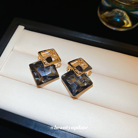 A廠【HE24847】925銀針鑲鑽菱形鏤空耳環復古輕奢時尚百搭耳環法式高級感氣質耳飾女 25.02-2