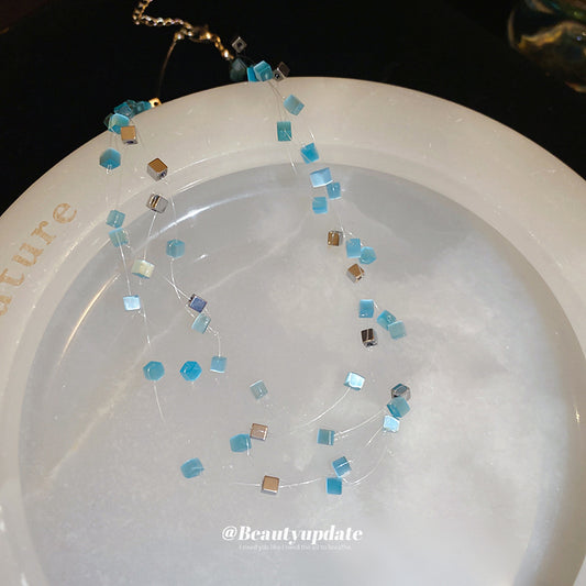 A廠【HN8197】方塊貓眼石疊戴式項鍊小眾時尚設計百搭鎖骨鏈時尚高級感氣質項鍊 25.02-2