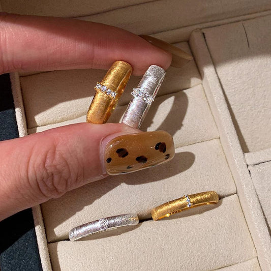 F廠【DQ8194R】S925純銀義大利拉絲緞面戒指女中古富貴風閃鑽高級感磨砂指環 25.02-4