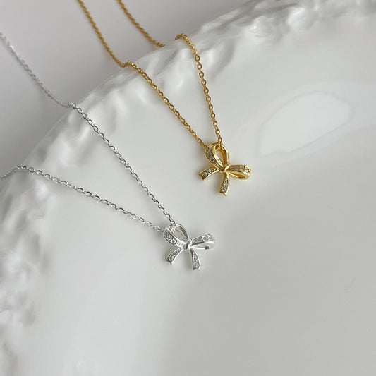 F廠【DQ1143N】S925純銀法式精緻蝴蝶結項鍊日韓輕奢小眾設計閃鋯鎖骨鍊女潮 25.02-4