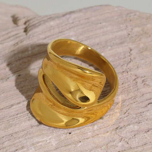B廠【A336】ins跨國不鏽鋼鍍18k金幾何誇張戒指歐美風時髦不規則食指戒 25.03-2