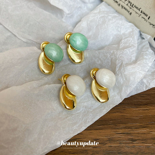 A廠【HE25245】925銀針滴油橢圓形豆耳環女精緻簡約大氣耳環輕奢高級感時尚清新耳環 25.03-2