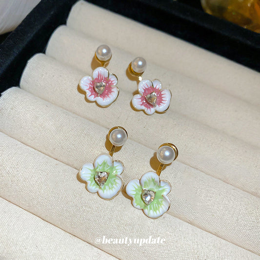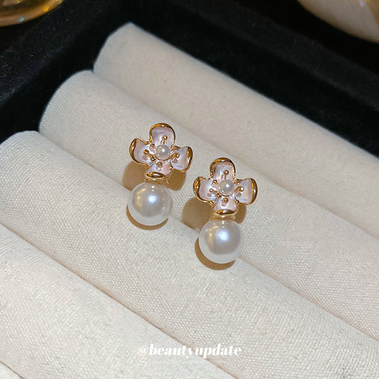 A廠【HE25219】925銀針噴漆花朵珍珠耳環女法式優雅氣質耳環時尚輕奢耳飾小眾高級感 25.03-2