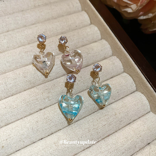 A廠【HE25242】925銀針鋯石琉璃愛心耳環歐美時尚氣質耳環女個性百搭耳環輕奢高級感 25.03-2