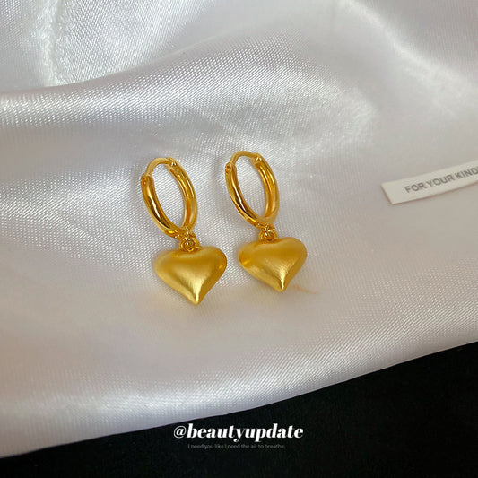 A廠【HE25257】金屬復古愛心拉絲耳環個性設計耳環女簡約時尚百搭耳環輕奢高級感 25.03-2