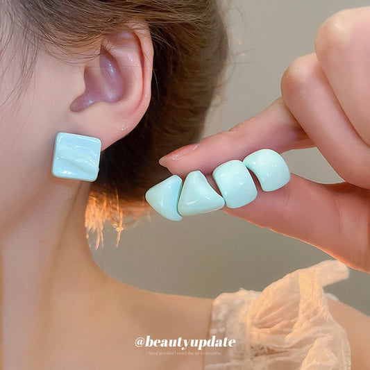 A廠【HE25225】925銀針草綠清新幾何耳環韓系ins簡約百搭氣質耳環小眾高級感耳飾女 25.03-2