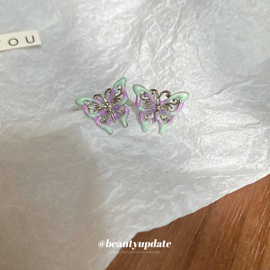 A廠【HE25267】925銀針滴油簡約時尚蝴蝶耳環個性冷淡風耳環輕奢高級感氣質耳環 25.03-2