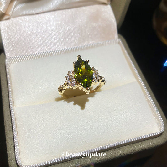 A廠【HR2471】14K真金電鍍橢圓形綠寶石開口戒指復古小眾食指戒輕奢高級感手飾女 25.03-2