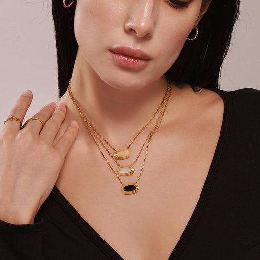 B廠【P077】歐美跨境ins風幾何不鏽鋼黑瑪瑙鑲嵌項鍊吊飾鍍18K真金飾品 25.03-2