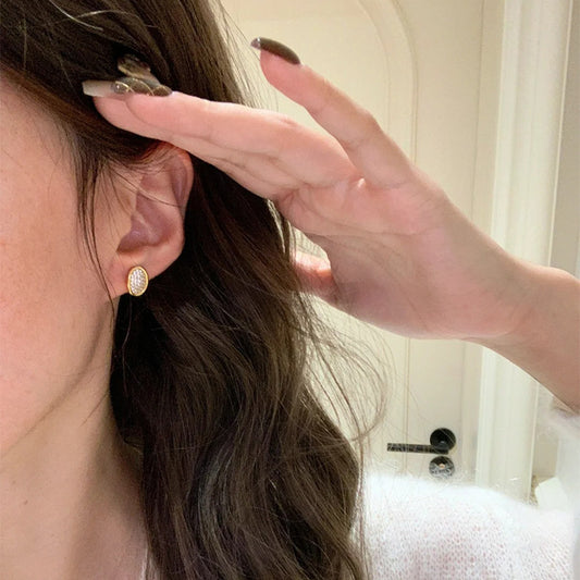 F廠【DQ11057E】S925純銀中古風時尚橢圓滿鑽耳環女復古幾何個性輕奢精緻耳環 25.03-2