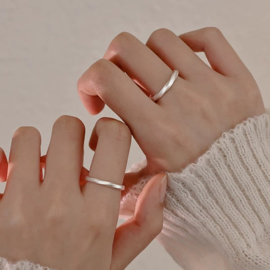 F廠【DQ8053R】999足銀莫比烏斯情侶對戒男女時尚輕奢磨砂扭紋素圈開口指環 25.03-2