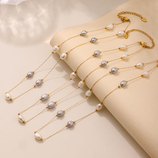 B廠【P1303】淡水養殖精選珍珠項鍊跨境女式精緻鎖骨鏈小眾頸鍊公主配件 25.03-4