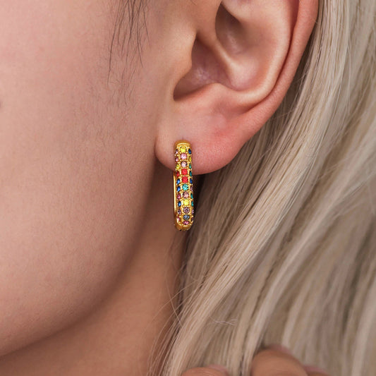 B廠【F573】精緻C型鋯石耳環不鏽鋼PVD鍍18K真金氣質輕奢耳飾 25.03-4