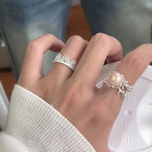 F廠【DQ8250R】S925純銀ins蕾絲花邊尾戒女簡約小眾高級感鏤空寬面開口指環 25.03-4