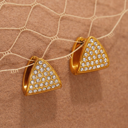 B廠【F1186】簡約創意三角鋯石滿天星耳環時尚通勤不鏽鋼保色耳扣熱銷款 25.04-1