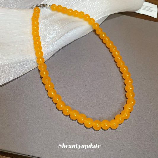 A廠【HN8380】琉璃珠串珠黃色項鍊多巴胺夏季小清新鎖骨鏈氣質百搭高級感頸鍊女 25.04-1