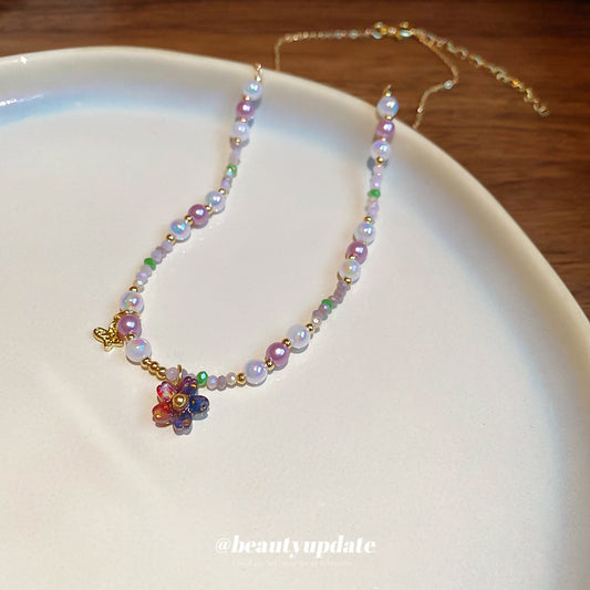 A廠【HN8386】貝珠紅紋石鋯石串珠花朵蝴蝶吊墜項鍊多巴胺小清新鎖骨鍊頸鏈 25.04-1