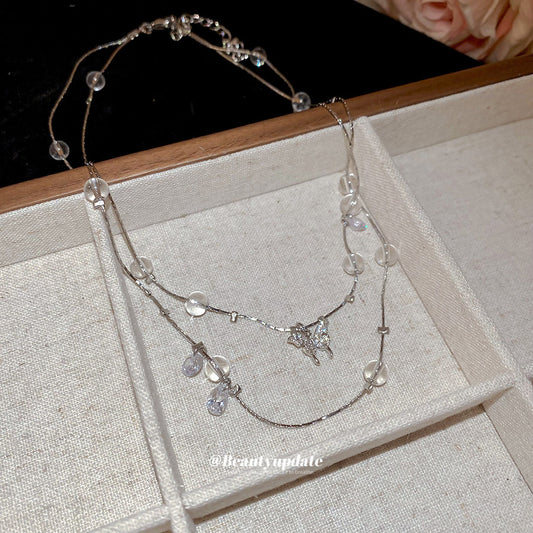 A廠【HN8369】鋯石蝴蝶雙層項鍊甜美時尚優雅氣質疊戴鎖骨鏈小眾高級感頸鍊 25.04-1