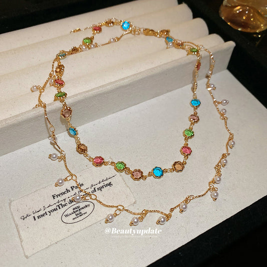 A廠【HN8384】異國風情雙層疊戴珍珠項鍊輕奢高級感鎖骨鏈小眾時尚設計頸鍊項鍊 25.04-1