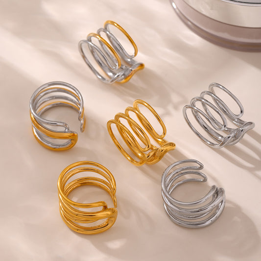 B廠【A102】不鏽鋼多層拼色戒指開口可調式環電鍍18k真金歐美風飾品 25.04-1