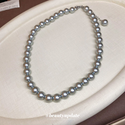 A廠【HN8412】法式輕奢灰色珍珠串珠項鍊個性簡約時尚鎖骨鏈小眾高級感氣質頸鍊 25.04-1