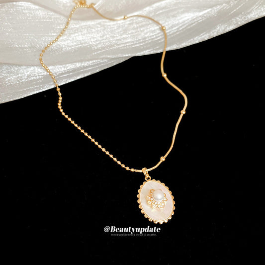 A廠【HN8410】18k真金電鍍鋯石橢圓珍珠項鍊復古輕奢氣質鎖骨鏈小眾高級感頸鍊 25.04-1