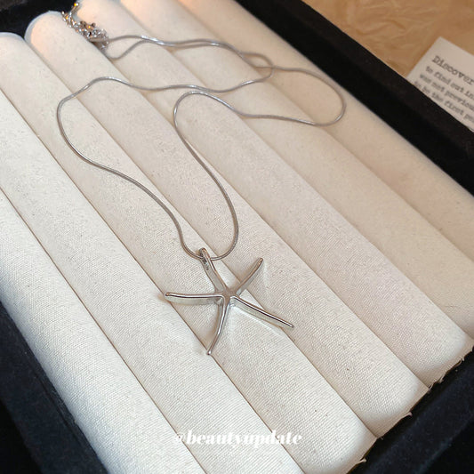 A廠【HN8387】極簡風銀色立體海星吊墜項鍊女百搭小眾鎖骨鍊ins冷淡風頸鍊配件 25.04-1