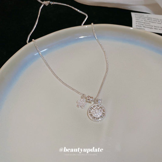 A廠【HN8365】素銀鋯石花朵圓形吊墜項鍊小眾設計鎖骨鏈簡約精緻高級感百搭項鍊 25.04-1