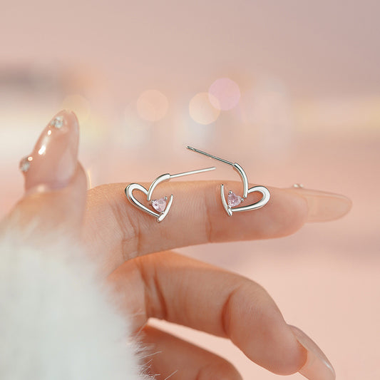 E廠【YC4432E】原創S925純銀粉心摩登愛心精緻簡約氣質獨特設計百搭耳飾 25.04-1