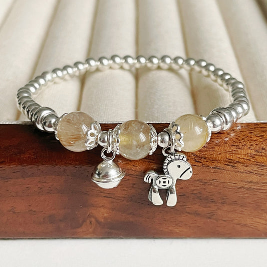 F廠【DQ1089S】馬上有錢手串女S925純銀天然黃水晶圓珠手鍊木馬鈴鐺手飾 25.04-1